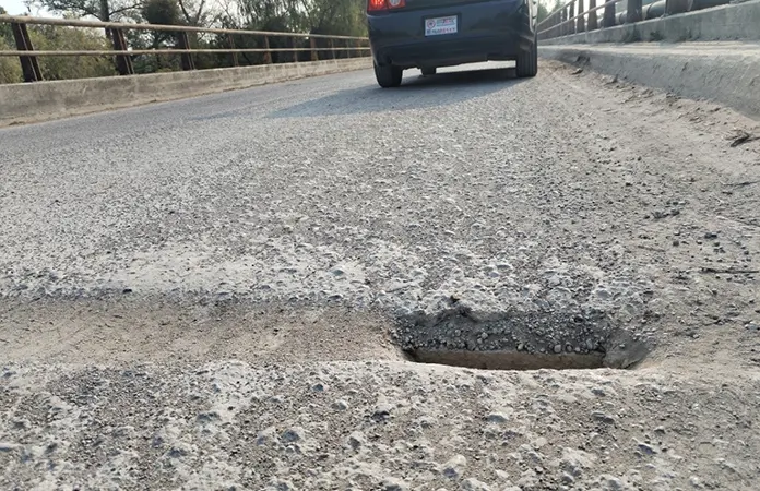 CIUDAD VALLES.- Fisuras y hoyancos en el puente Santa Rosa han sido señalados por ciudadanos que a diario pasan por ahí, aunque no ha habido dictámenes de parte de Obras Públicas al respecto, pero que debería hacerse un estudio concienzudo de las condiciones de la estructura, ante el riesgo de alguna contingencia.