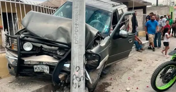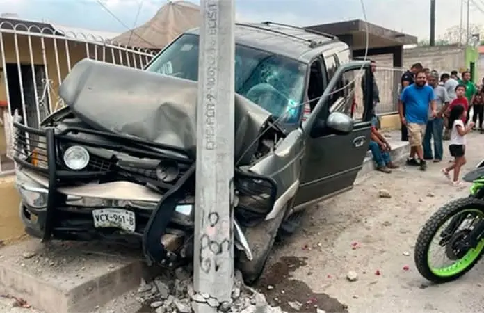Los hechos sucedieron el domingo por la tarde en la calle Veracruz, cuando el chofer de una camioneta manejaba a exceso de velocidad y se impactó contra varios vehículos que se encontraban en esta zona, finalmente terminó su loca carrera contra un poste y una vivienda, destruyendo la fachada, sólo generó daños materiales.