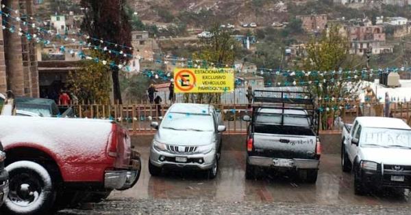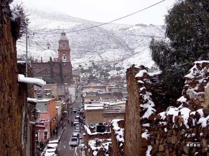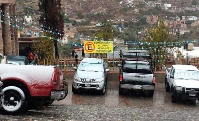 La mañana de este sábado comenzó a caer nieve y aguanieve en el municipio de Real de Catorce, como efecto del frente frío 24.