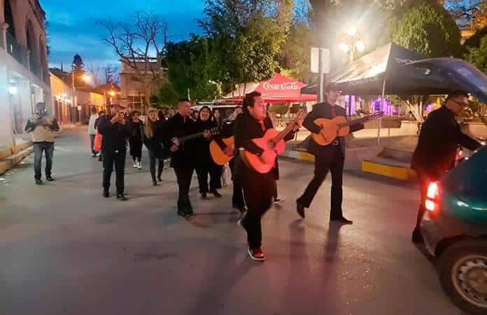 La callejoneada se realizó bajo el acorde de melodías por parte de la Rondalla Amor del Desierto, interpretando melodías clásicas del romanticismo como Corazón de Roca, Hasta donde te quiero, Gema, Tres regalos, Reloj, entre otras.