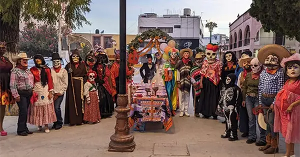 Matehuala.- El grupo Coatlicue llevó a cabo el cierre de la temporada del Día de Muertos con la subida de las máscaras de Huehues que cada año utilizan en el Xantolo, esto lo realizaron en la Plaza de Armas, de esta manera las máscaras fueron guardadas y no se sacarán hasta el próximo año.