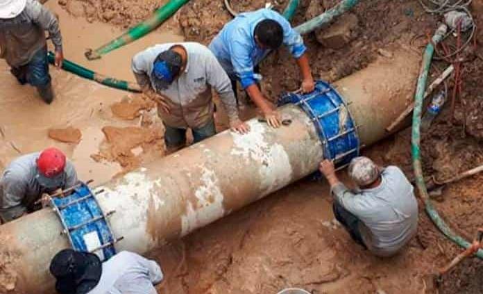 Las cuadrillas trabajaron día y noche para solucionar el problema en la ruptura de un tubo de 20 pulgadas en la cercanía del Ojo de Agua, que provocó una enorme fuga de agua.