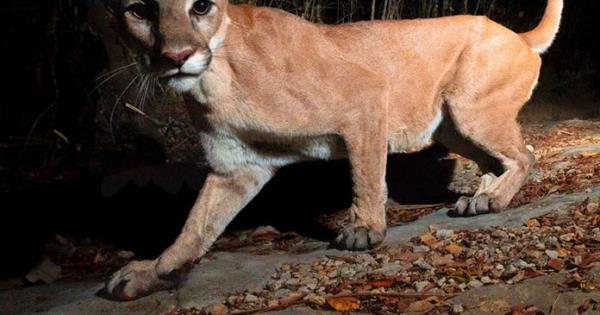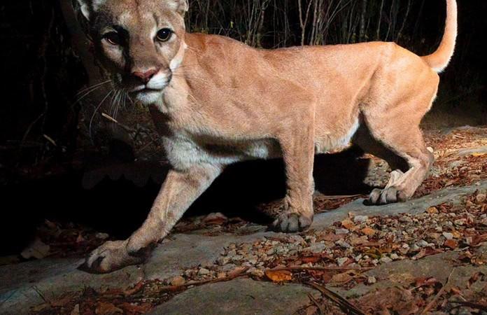 En la imagen aparece un puma (Puma concolor), fotografiado en la Huasteca por el naturalista Jorge Castro Urbiola.