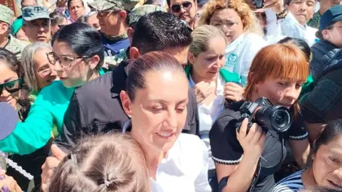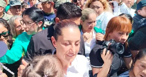 Antes de hacer el recorrido, una turbamulta la vitoreó y les informó que habrá dos apoyos de parte del Gobierno federal para los damnificados (5000 de acuerdo con cifras del Gobierno del Estado), uno antes del censo que se llevará a cabo y otro después, insistiendo en que a nadie dejarán desamparado.