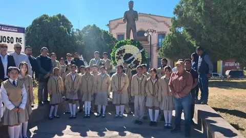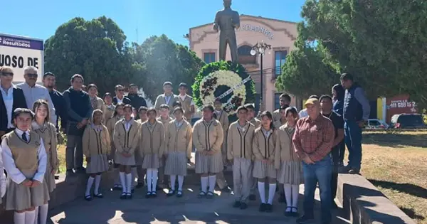 Matehuala.- Se realizó un acto cívico para conmemorar el día del ferrocarrilero, el evento se llevó a cabo en la Plaza Ferrocarrilera, en el monumento al Héroe de Nacozari, Jesús García, participaron alumnos de la escuela primaria Club de Leones turno matutino y personal del Gobierno municipal.