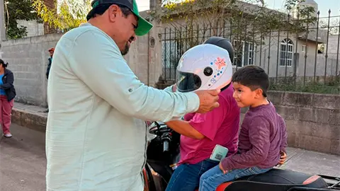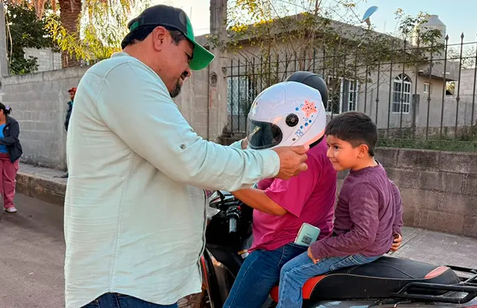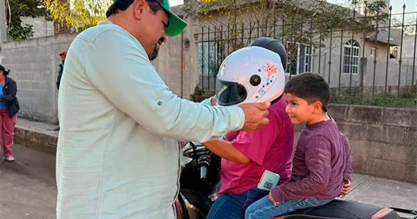 Incluso el alcalde Rodolfo Loredo Hernández hizo entrega a los pequeños que acompañaban a sus padres en las unidades en que se transportaban, ya que es indispensable para tener un trayecto seguro, pues el casco es primordial al subirse a una motocicleta.