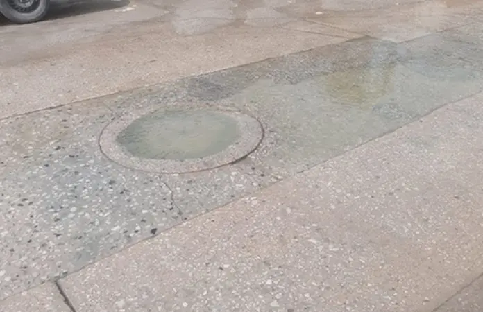 Desde ayer, el fétido olor inunda todo el vecindario, debido a un colapso de la tubería de aguas negras en una de las zonas más bajas de la ciudad.