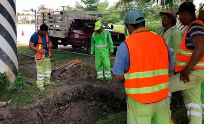 CIUDAD VALLES.- Operarios de la Secretaría de Comunicaciones y Transportes (SCT) comenzaron a hacer las reparaciones del socavón que se formó a un lado de una de las columnas que sostienen el puente La Lagartija, de acuerdo con información de la misma dependencia.
