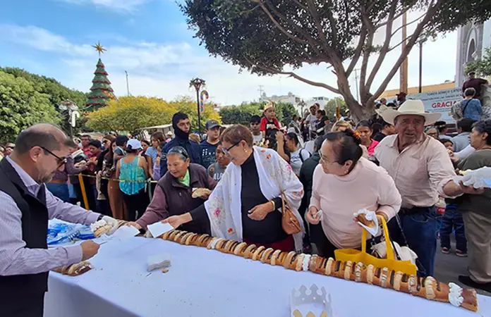 La rosca de Reyes se colocó en la calle Constitución; para este gran evento se contó con el apoyo de las autoridades policiacas y de auxilio, que estuvieron al pendiente por si alguna persona llegaba a desmayar brindarle los primeros auxilios; afortunadamente se tuvo saldo blanco en esta actividad.