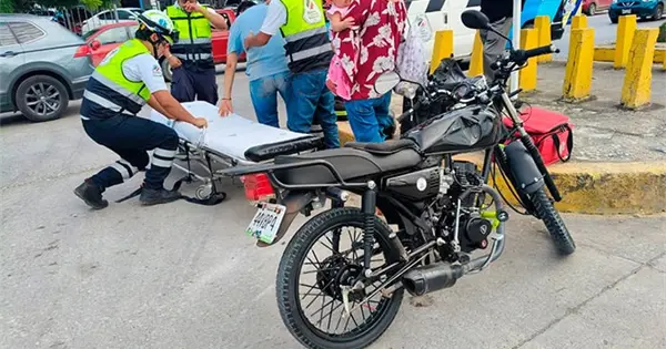 La unidad de dos ruedas era conducida por Jesús Yahir Rubio, de 22 años, vecino de la colonia Solidaridad. Debido al impacto, cayó al pavimento y sufrió lesiones en una pierna.