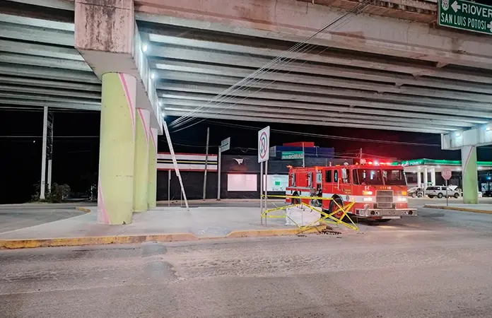 Ciudad Fernández.- Corporaciones de emergencia rescatan a felino que tenía días atrtapado en el puente elevado de la calle Morelos, del cual solo se escuchaban sus gemidos, elque no podía escapara del sitio donde se encontraba.