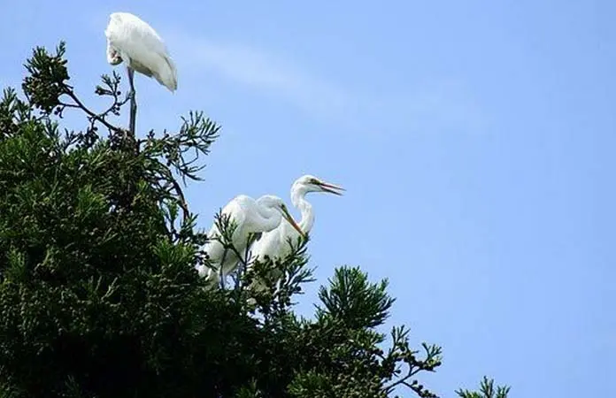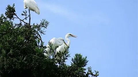 Rescatan bomberos garzas atrapadas en lo alto de un árbol