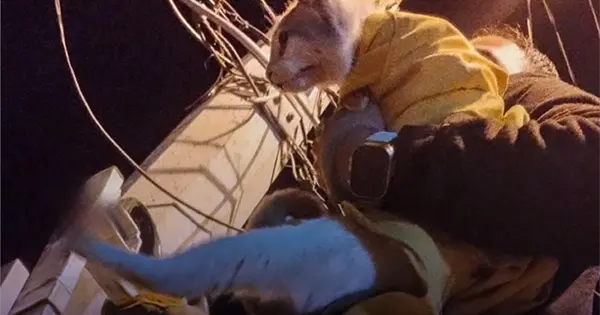 El gato estaba trepado en poste de varios metros de altura y maullando, la mascota no podía bajarse, por lo que inmediatamente procedieron a trabajar para bajar al animal, afortunadamente lograron el rescate sin ningún problema y se lo entregaron a sus dueños, quienes agradecieron a los bomberos el apoyo brindado.