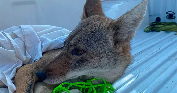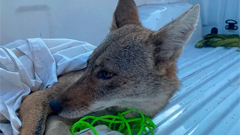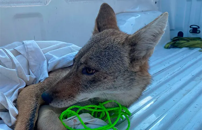 El conductor trasladó al coyote al Cuerpo de Bomberos, para que fuera atendido por el veterinario.