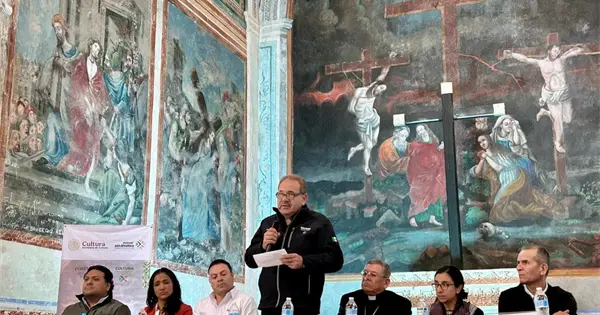 De acuerdo con la dependencia, las labores contemplaron la restauración de murales con escenas del viacrucis, pintura ornamental en muros y cúpula, así como la recuperación del altar del recinto religioso.