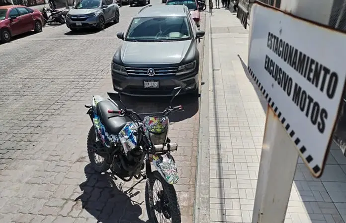 Sobre la calle Hidalgo, de lado izquierdo, Obras Públicas, Canaco y la Dirección de Seguridad Pública y Tránsito Municipal pintaron delimitaciones para las motocicletas, como un intento de que los ciudadanos comiencen a estacionar sus motos en ese lugar en batería y sin ocupar espacios a media calle.
