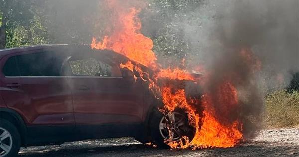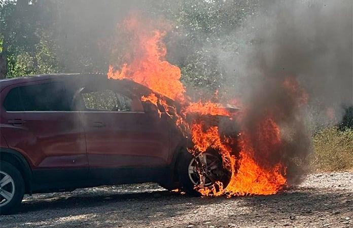 Justo en el acceso al ejido Tancoco, encontraron en llamas una camioneta tipo suv marca Chevrolet, color guinda, y sus ocupantes estaban a unos metros, sin lesiones.