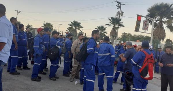 VILLA DE LA PAZ.- Mineros pararon labores a las 16:00 horas del día de ayer para manifestarse en contra la Negociación Minera de la Paz, exigen salarios justos y el reparto de utilidades, señalan que en años pasados ha sido muy bajo.