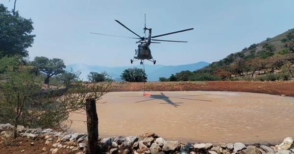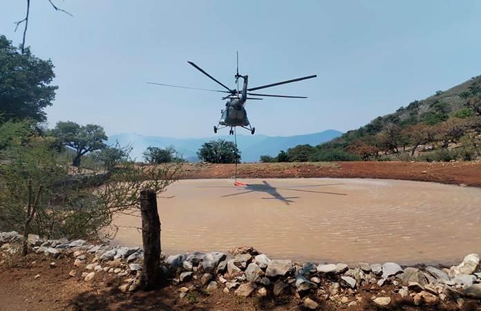 Así mismo, fue enviado un helicóptero de gobierno del estado, personal de Protección Civil y habitantes están apoyando en las labores para que el helicóptero pueda cargar agua en la laguna de Chupaderos.