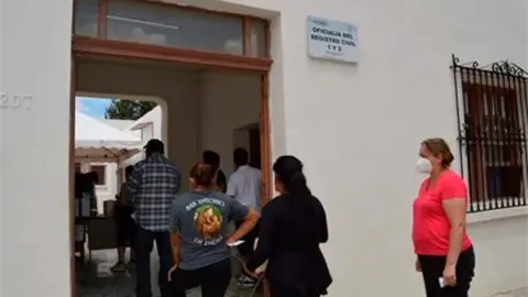 En las oficinas hay un gran número de personas formadas para tramitar su acta de nacimiento, lo mismo sucede de dos a tres de la tarde, que es el horario cuando pasan a recogerlas, enormes filas en la calle Cuauhtémoc donde están ubicadas las oficinas.