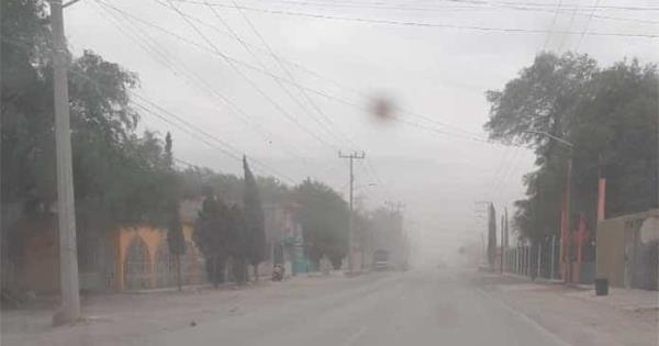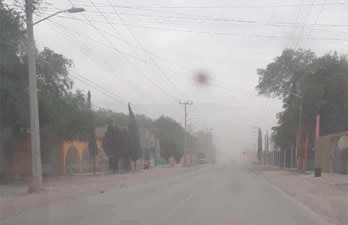 MATEHUALA.- La ciudad de Matehuala fue cubierta por una densa polvareda que provenía de los lameros que se ubican en el municipio de Villa de la Paz.