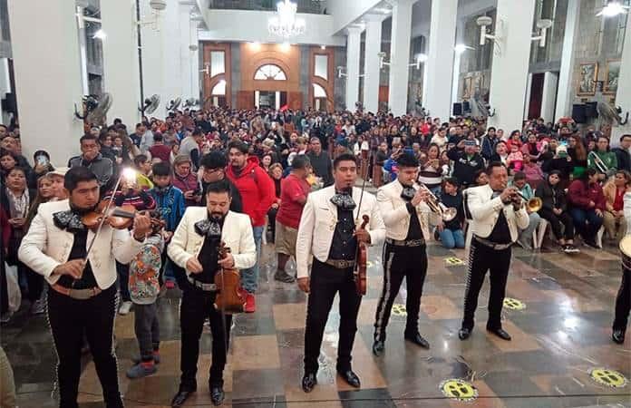 La noche de la Guadalupana volvió a tener las mañanitas de mariachis del Ayuntamiento, del Sindicato del Ayuntamiento y de los Gastronómicos, así como de otras agrupaciones, pero quedaron atrás los días de presencias multitudinarias, en las que no cabía un alfiler en el Sagrario Catedral.
