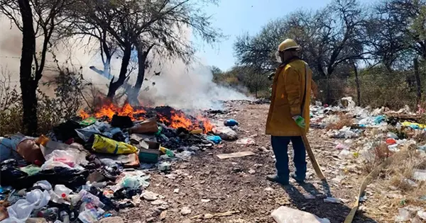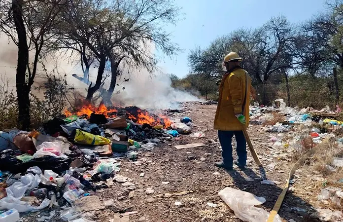 Lagunillas.- Elementos del Cuerpo de Bomberos de San Ciro de Acosta acudieron a combatir un incendio que se generó en un basurero de Lagunillas y que estaba generando mucho temor de que pudiera propagarse a otros lugares cercanos.