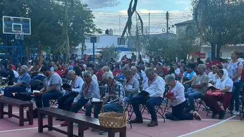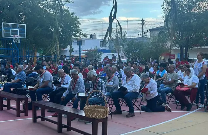 La misa se decidió oficiar en la plaza, dado que cabe más gente que en la capilla, por lo que pusieron un altar en la plaza y sillas y bancas. El lugar lució completamente lleno de feligreses, sobre todo muchos de la adoración nocturna, y la gente agradeció que afortunadamente este año sí se tuvieron lluvias que no se habían tenido en años, por lo que se tuvieron buenas cosechas; así mismo, al término de la misa las personas del campo llevaron comida preparada con sus cosechas para compartir.