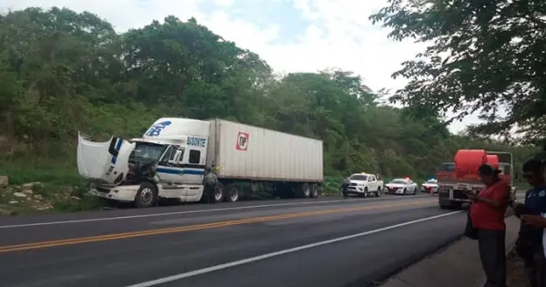 Un joven de 24 años de edad, que se llama Adolfo, manejaba un tráiler marca International blanco, de caja cerrada, con razón social Auto Transportes Bisonte.