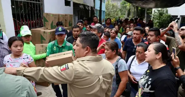 Durante la visita, se entregaron apoyos alimentarios, paquetes de limpieza y diversos enseres domésticos, como colchones, estufas, cobijas y utensilios de cocina, con el objetivo de atender a las familias que sufrieron pérdidas materiales.