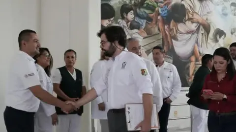 El galeno de esta localidad informó que del catálogo de productos como medicamentos y material de curación que maneja IMSS-Bienestar y que consta de cinco mil artículos, al Hospital le hacían falta 400 y con la visita de Svarch se completa el 65 por ciento de este faltante, es decir, faltarían 130 medicinas del cuadro básico que serían enviadas en una siguiente remesa.