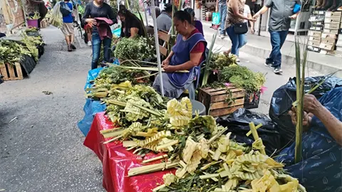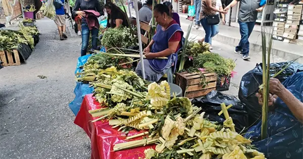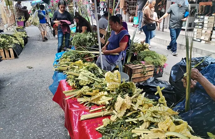 Alrededor de 60 vendedoras de palma artesanal para el Domingo de Ramos estuvieron en el andador Padre Xavier en esta conmemoración de la entrada de Jesús a Jerusalén, días antes de su Pasión en el Viacrucis.