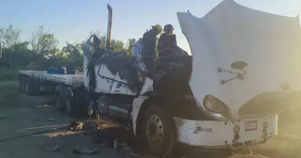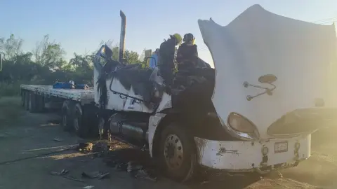 La unidad era un Freightliner color blanco, con razón social Transporte Rubio, y estaba a cargo de un hombre de la tercera edad identificado como Dionisio "N".