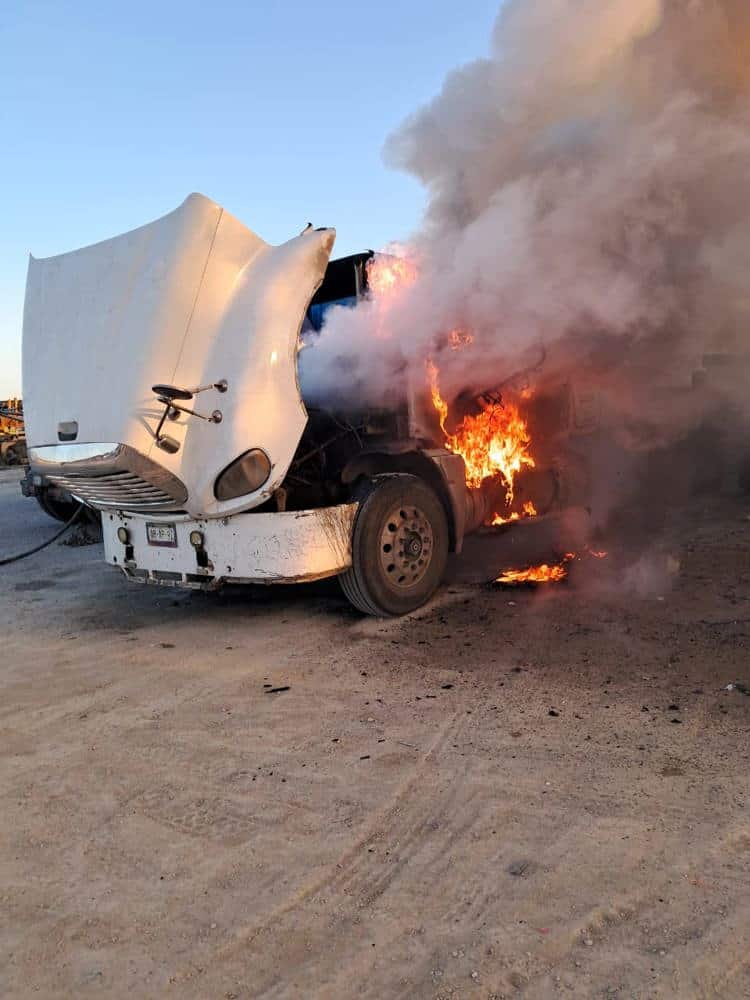 CIUDAD VALLES. Un tráiler que se encontraba estacionado en un predio ubicado en la salida de Ciudad Valles hacia Rioverde se incendió presuntamente a causa de un corto circuito, resultando en pérdida total.