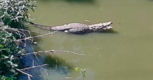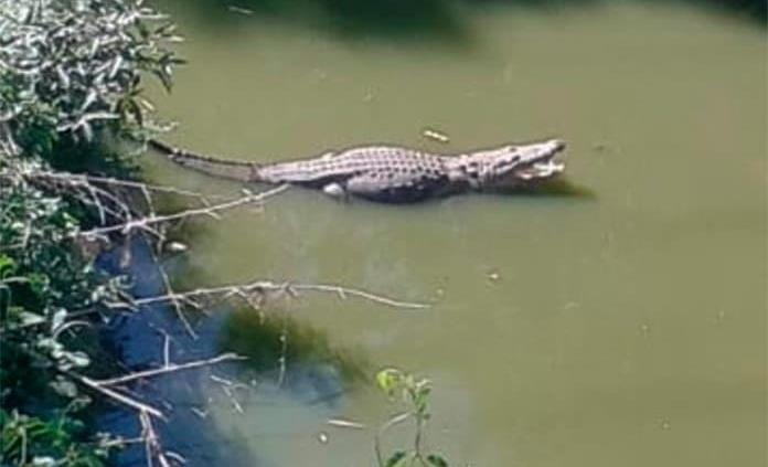 CIUDAD VALLES.- En el arroyo de Las Cruces volvió a aparecer un cocodrilo de más de tres metros y medio que suele andar por ese sitio, de acuerdo con vecinos de ese lugar.