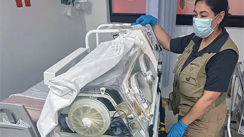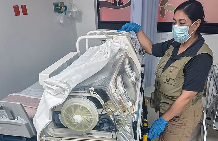 Trasladan a bebé en una incubadora