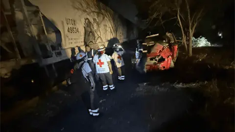 Al sitio acudieron paramédicos de la Cruz Roja, Protección Civil Municipal y policías municipales. Junto a las vías localizaron una Ford Escape color guinda, de origen extranjero y con engomados de una organización de transportistas; la unidad estaba abandonada, sin ocupantes en el lugar.