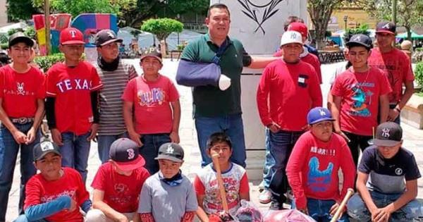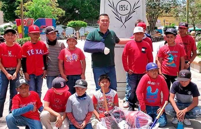 Durante la jornada de atención ciudadana que se llevó a cabo en la plaza principal de Rioverde, se uniformó y entregó caretas, pelotas, bates, guantes y cascos para los 16 integrantes del equipo de beisbol.
