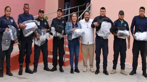 El presidente municipal Francisco Escamilla entregó la nueva indumentaria a los agentes policiacos, pues ya los uniformes que portaban estaban muy deteriorados, pues tenían tiempo que no se les entregaban nuevos, por lo que ahora tendrán una mejor presentación.