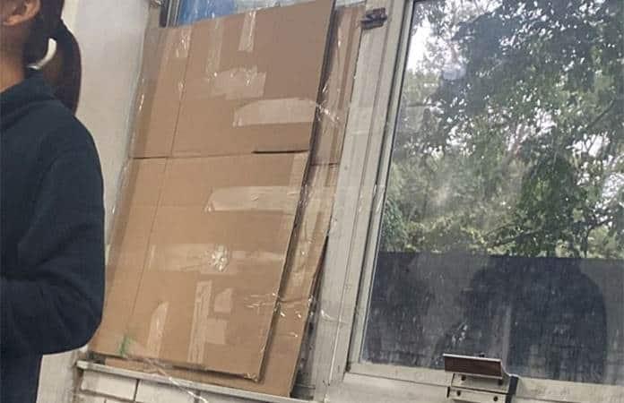 Los alumnos de este grupo de la institución pasaron los días más fríos del invierno con un cartón acomodado a guisa de hoja de ventana, a falta de vidrio y las quejas de los padres de familia comenzaron a llegar con el reportero de este medio de comunicación.