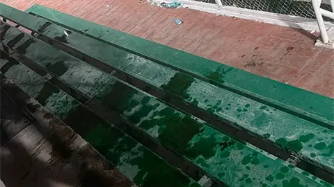Señalaron autoridades que los sujetos derramaron aceite y quemaron las gradas de la cancha deportiva de futbol, causando severos daños en otras partes del centro deportivo.