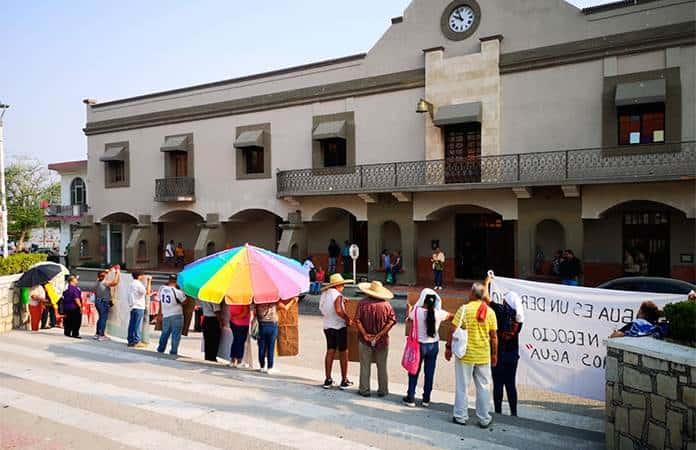 CIUDAD VALLES.- Ayer durante la mañana, habitantes de la colonia con estatus de irregular, Balcones, se manifestaron frente a la presidencia municipal porque la Dapas no les ha enviado agua a este sector, aunque la protesta la realizaron en la sede del Ayuntamiento.