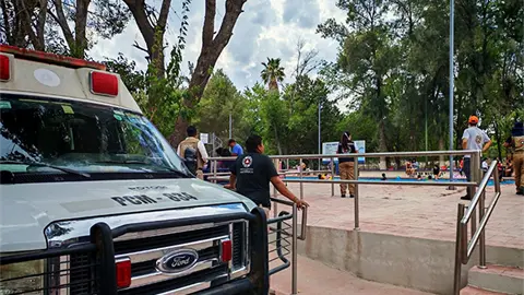 Matehuala.- Como parte de las actividades de la temporada vacacional, personal de Protección Civil realizó operativos de seguridad, destacando la presencia en el área del parque recreativo y albercas.