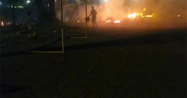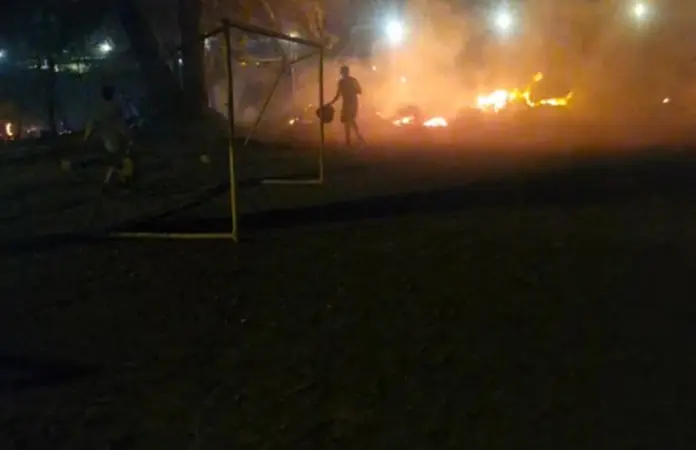 Matehuala.- El jueves por la noche se registró un fuerte incendio en campos de futbol de la colonia Guadalupe, a un lado del lugar había un lote baldío al que le prendieron fuego, pero se salió de control y se expandió rápidamente llegando al campo de futbol. Entre vecinos y bomberos estuvieron arrojando agua al lugar para sofocar las llamas que finalmente se apagó el siniestro.