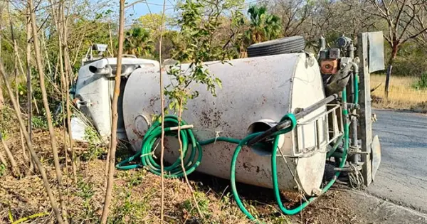 El percance ocurrió cuando el conductor, adscrito al departamento de Obras Públicas del Ayuntamiento, regresaba a la cabecera municipal para recargar el camión y continuar con el reparto del vital líquido.