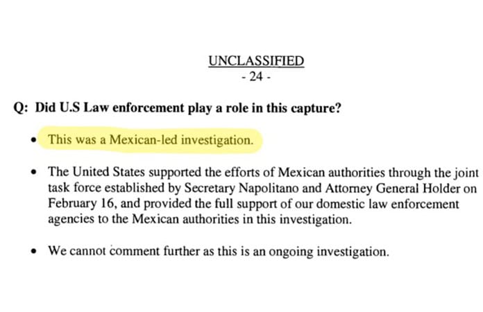 Por esos días, se especuló que las capturas ocurrieron gracias no al trabajo mexicano, sino al de las corporaciones estadounidenses, que incluyó el uso de drones. Un congresista estadounidense, Henry Cuéllar, aceptó que hubo aportación de datos, pero no confirmó la vigilancia aérea.