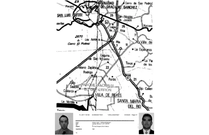 Los funcionarios, Jaime Zapata y Víctor Ávila, asignados a la embajada, regresaban a la CDMX desde San Luis Potosí, donde se habían reunido con colegas para recoger documentos enviados por el consulado en Monterrey. La capital potosina fue usada como punto medio para la realización. Una parte del documento está testada, probablemente la parte que especifica qué tipo de actividad realizaron en San Luis.