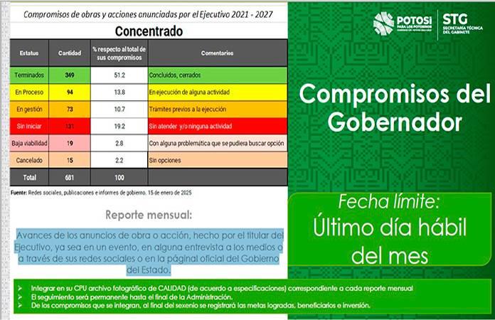 Cerrados o encarrilados, la Secretaría Técnica del Gabinete cuenta 516 compromisos, el 75% del total.