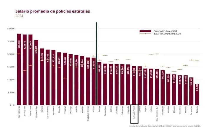 El documento toma como referencia los 17 mil 300 pesos mensuales el salario mensual bruto promedio de los policías estatales del país, que la Comisión Nacional de Salario Mínimos calculó para 2024.