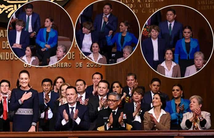 A medida que avanzaba el discurso de la presidenta Claudia Sheinbaum Pardo en la ceremonia del 108 aniversario de la Constitución en el Teatro de la República de la capital queretana, el rostro del gobernador Ricardo Gallardo Cardona se iba ensombreciendo.